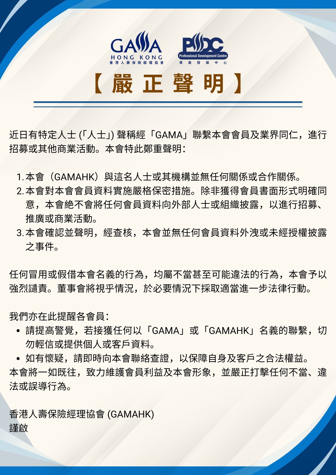 30 March, 2026By GamaNews About the author Prev資深財務策劃顧問證書課程 2026 年 4 月課程 現正招生 Related posts資深財務策劃顧問證書課程 2026 年 4 月課程 現正招生2 February, 2026【會籍申請】GAMAHK 會籍 202615 January, 2026【獎項資訊】GAMA 榮譽獎項 202615 January, 2026【獎項資訊】招星薈 2025 (Jul-Dec)15 January, 2026【續會/入會早鳥禮遇】獨家體驗 ICAC 誠信之旅22 December, 2025【緊急呼籲】保險同業募捐行動支援大埔宏福苑災民3 December, 2025